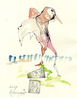 | Unruhiges Herz - Horst Janssen, Unikat, Feder/Aquarell auf Papier |